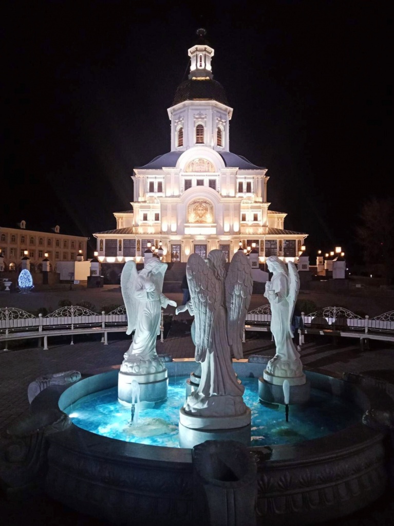 Нас ожидает торжественная ночная служба с песнопением дивеевских сестер, а сказочная иллюминация территории монастыря.